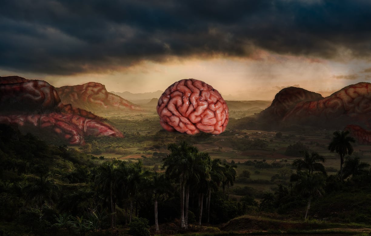 El término campo de concentración nos transporta inevitablemente a la idea del fascismo y como tal, a un régimen totalitario y dictatorial en el que los seres humanos carecen de sus derechos elementales y son deshumanizados. Es un lugar donde las personas son despojadas de su libertad y sus necesidades básicas son ignoradas, sufren maltratos y son consumidos y desgastados, hasta quedar reducidos a despojos debido a la falta de alimentos e higiene, al hacinamiento y la violencia. Así mismo, esta obra, contextualizada en un paisaje típico de los campos de Cuba, nos lleva a la idea terrible de dichos lugares, pero esta vez, situando como víctima al cerebro humano, como representación de la conciencia y el pensamiento. El autor nos habla así de Cuba como lugar en el que la libertad de pensamiento queda suprimida, donde las ideas son cuartadas y apresadas y las vidas humanas son consumidas y violentadas, quedando vacías y sin voluntad.
