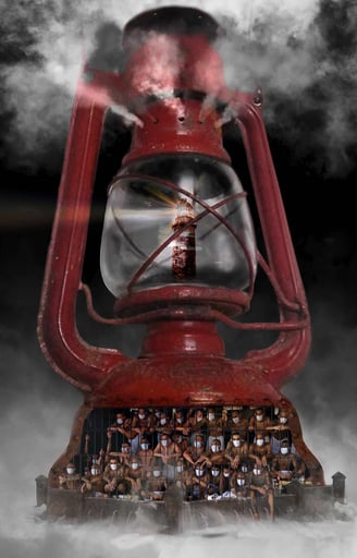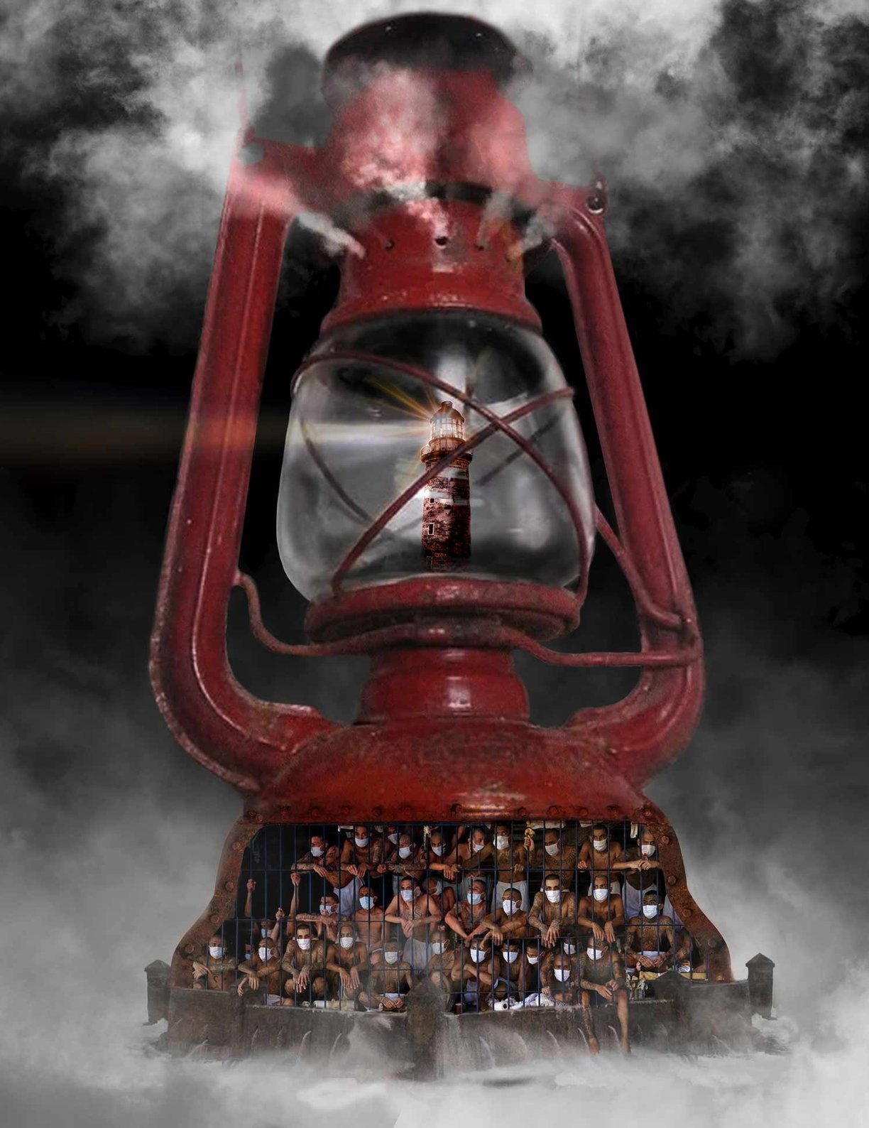 El quinqué es un objeto arraigado a la idiosincrasia cubana, sobre todo después del período especial y los apagones de doce horas donde el quinqué era el salvador de cada familia, el único modo de alumbrarse por un tiempo prolongado. Sin embargo, hoy en día el quinqué es una herramienta en desuso, un recordatorio de que aquellos tiempos de oscuridad no son muy diferentes del presente. Los años pasan y Cuba sigue en el mismo lugar, detenida en el tiempo, a la deriva. Cuba es un quinqué, es la evidencia ante el mundo de un gastado y corroído sistema que ya no tiene utilidad, que no funciona. Desde su interior, los que la sobreviven ven el exterior como una realidad borrosa, e inalcanzable. No es un país, es una prisión. El pueblo es el combustible del cual se nutre el faro gubernamental para mostrar lo que ellos quieren que el mundo vea. Los oprimen y los hacen conscientes de que no tienen escapatoria y de que son vulnerables para que callen, para mantener su discurso, para que la opinión pública solo vea lo que ellos desean proyectar.